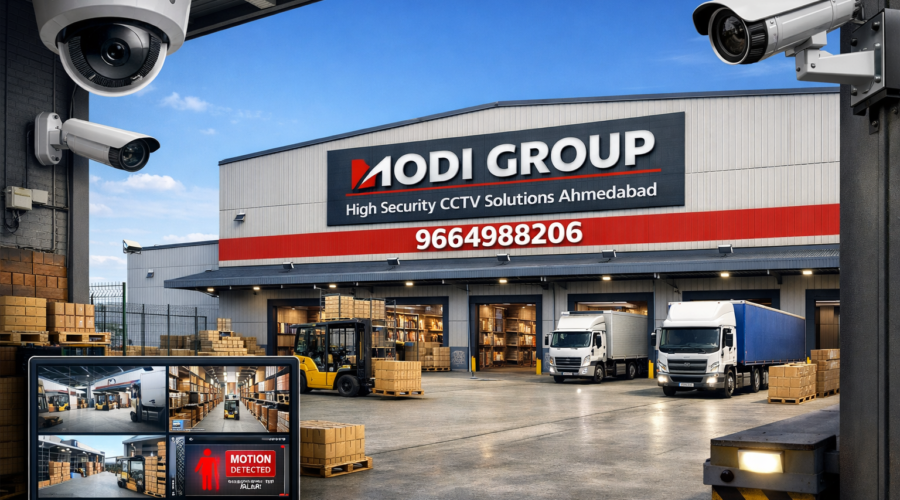 Industrial Warehouses CCTV Solution Ahmedabad | Modi Group MODI GROUP Z+ Security • Ahmedabad MODI GROUP CCTV One-Stop Solution • Ahmedabad Proud BNI Member – Perseus Chapter Free Site Visit / Quote AMC Plans BNI Members Industrial Warehouses ke liye High-Security CCTV Solutions – Pan Ahmedabad Modi Group aapko deta