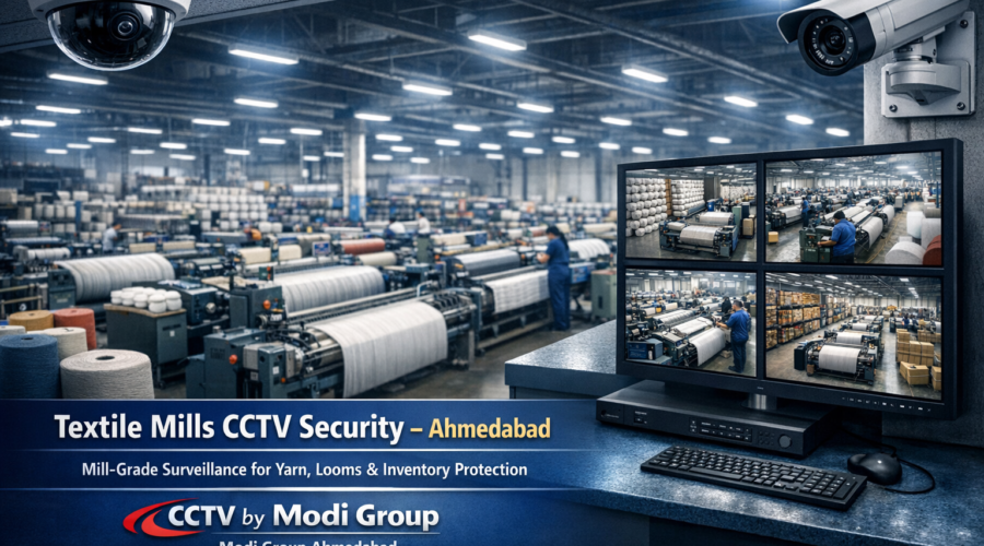 Textile Mills CCTV Solution Ahmedabad | Modi Group MODI GROUP Z+ Security • Ahmedabad MODI GROUP CCTV One-Stop Solution • Ahmedabad Proud BNI Member – Perseus Chapter Free Site Visit / Quote AMC Plans BNI Members Textile Mills ke liye Mill-Grade CCTV Security – Pan Ahmedabad Modi Group aapko deta