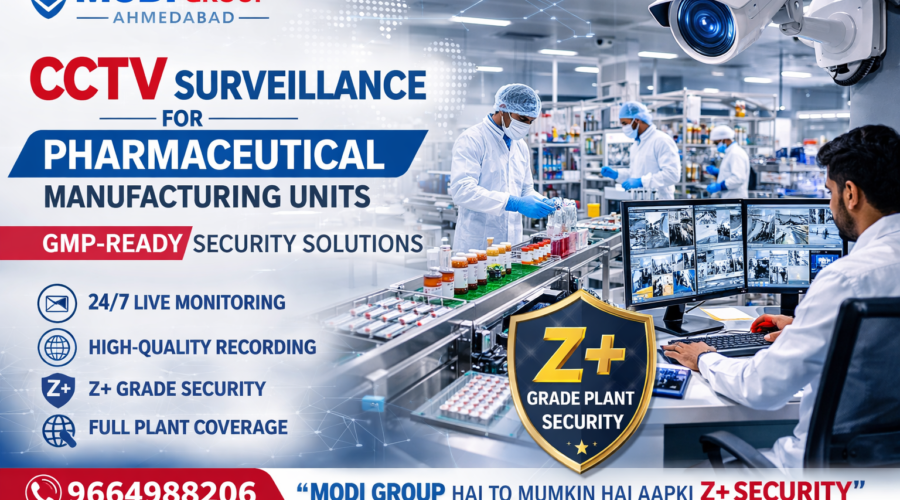 Pharmaceutical Manufacturing CCTV Solution Ahmedabad | Modi Group MODI GROUP Z+ Security • Ahmedabad MODI GROUP CCTV One-Stop Solution • Ahmedabad Proud BNI Member – Perseus Chapter Free Site Visit / Quote AMC Plans BNI Members Pharmaceutical Manufacturing Units ke liye GMP-Ready CCTV Surveillance – Pan Ahmedabad Modi Group aapko