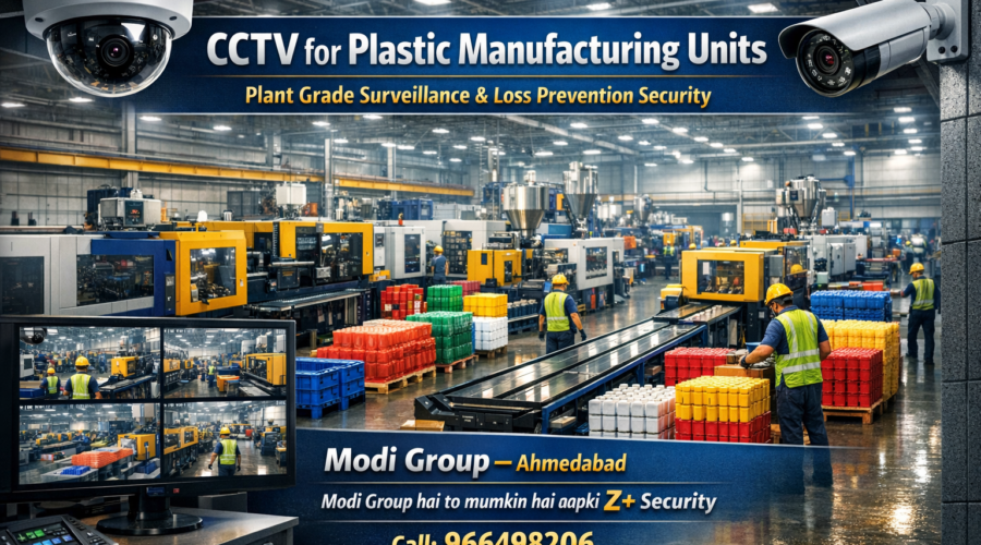 Plastic Manufacturing Units CCTV Solution Ahmedabad | Modi Group MODI GROUP Z+ Security • Ahmedabad MODI GROUP CCTV One-Stop Solution • Ahmedabad Proud BNI Member – Perseus Chapter Free Site Visit / Quote AMC Plans BNI Members Plastic Manufacturing Units ke liye Plant-Grade CCTV Security – Pan Ahmedabad Modi Group