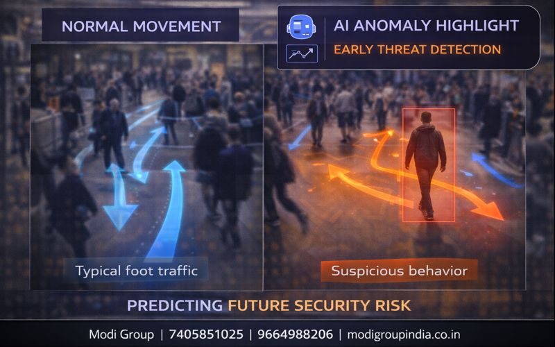“AI normal सीखता है → abnormal दिखे तो alert → security तुरंत action”