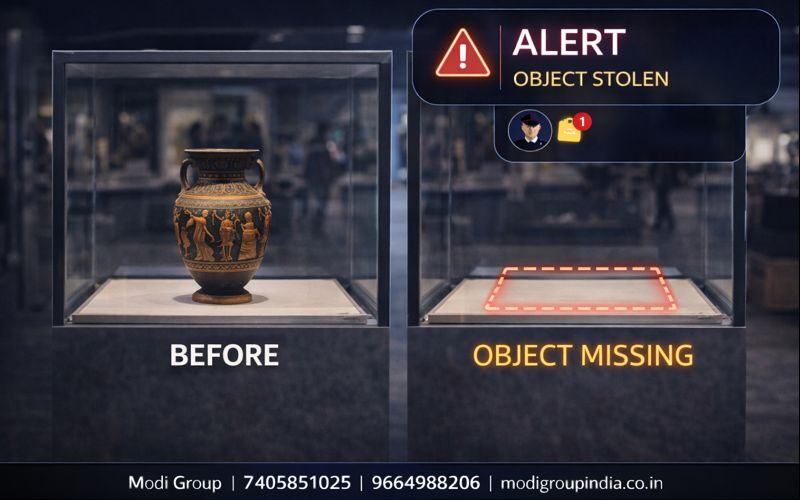 Object Removal Detection का मतलब है— कोई वस्तु/asset जो एक तय जगह पर रखा था, अगर उसे किसी ने उठा लिया या हटाकर ले गया, तो system उसे पहचानकर alert दे देता है।
