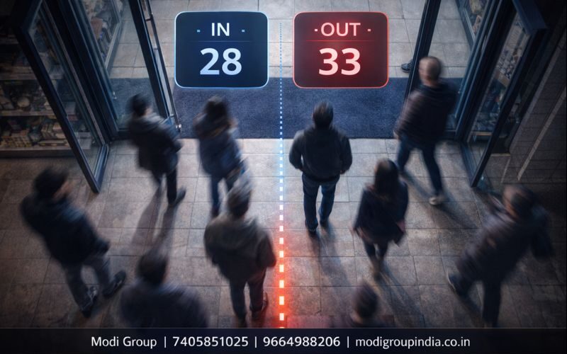 People Counting का मतलब है—किसी Entry/Exit से कितने लोग अंदर आए और कितने लोग बाहर गए—इसका हिसाब बनना। AI Smart CCTV में यह हिसाब अपने आप बनता है और Footfall Report के रूप में दिखता है।