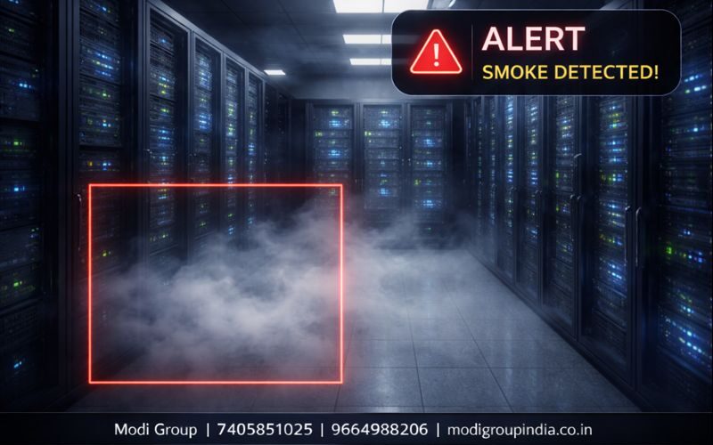मान लीजिए server room में किसी cable में heating हुई और धुआँ निकलना शुरू हुआ। अक्सर ऐसे मामलों में कुछ मिनट में fire बन सकती है।